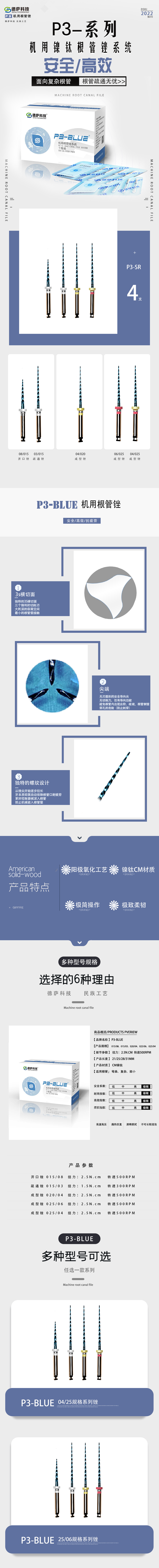 规格:015/08、015/03、020/04、025/04 开口锉 015/08 扭力:2.5N.cm 转速500RPM 疏通锉 015/03 扭力:1.5N.cm 转速300RPM 成型锉 020/04 扭力:2.5N.cm 转速500RPM 成型锉 025/04 扭力:2.5N.cm 转速500RPM